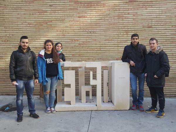 Los componentes del Grupo Eclipse de la asignatura de Proyectos 1 en la Escuela Técnica de la Superior de Arquitectura de Sevilla, asistimos a la iluminación del huerto urbano situado en el I.E.S. Joaquín Romero Murube, en la barriada Murillo.
